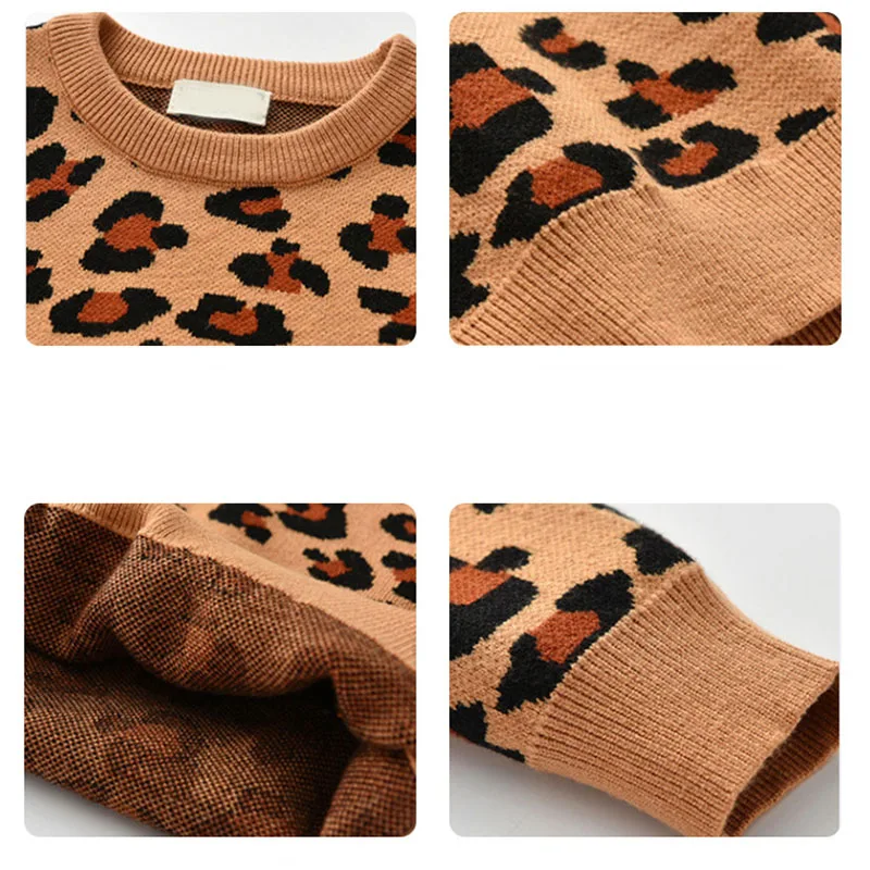 На возраст от 18 месяцев до 6 лет; Детские свитера; Подчеркивающая детскую индивидуальность леопардовой расцветки с длинным рукавом на осень-зиму теплый пуловер свитеры верхняя одежда для детей; Сезон весна-осень; Новинка