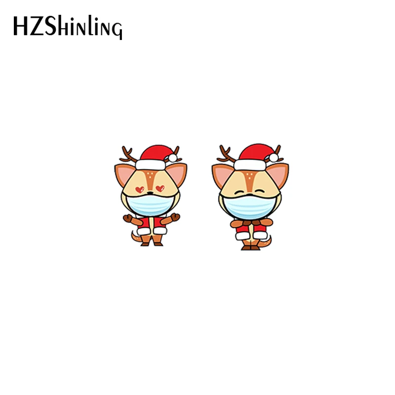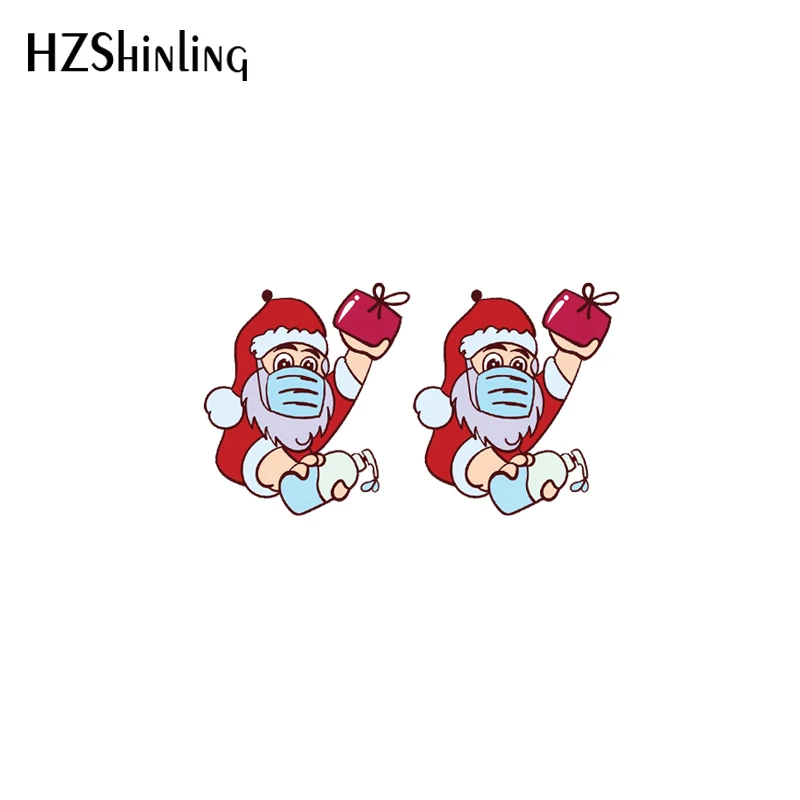 Серьги-гвоздики из смолы, с изображением Санта-Клауса и маски, 2020, эпоксидные украшения
