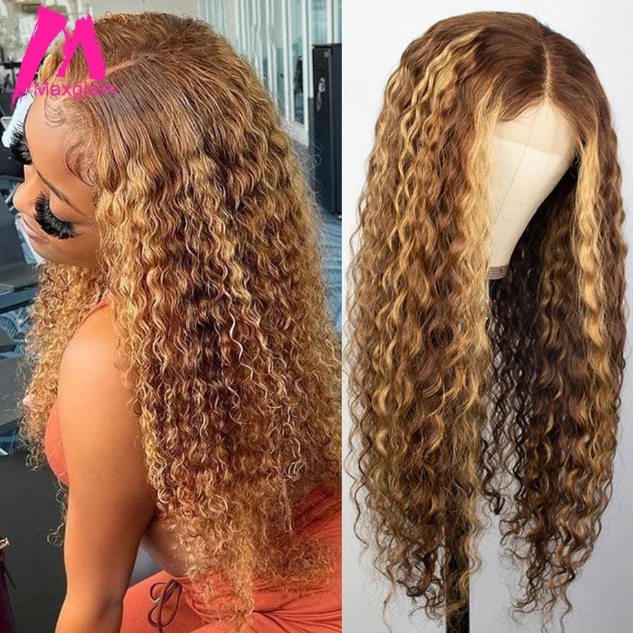 Кудрявый парик из натуральных волос с эффектом деграде, медовый блонд, глубокая волна, парики фронта шнурка, бразильский Реми, предварительно выщипанные, 13x1, для чернокожих женщин