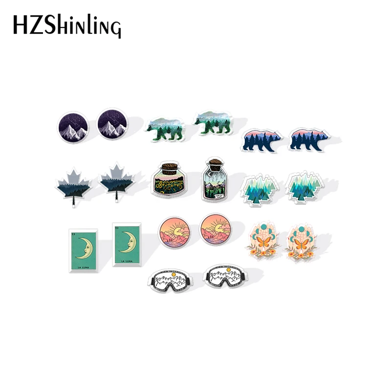 Серьги-гвоздики из акрила, с эпоксидной смолой, ручной работы, 2020