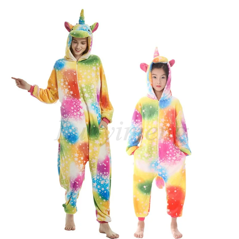 Зимние пижамы в виде животных, взрослые, дети, единорог, комбинезон...