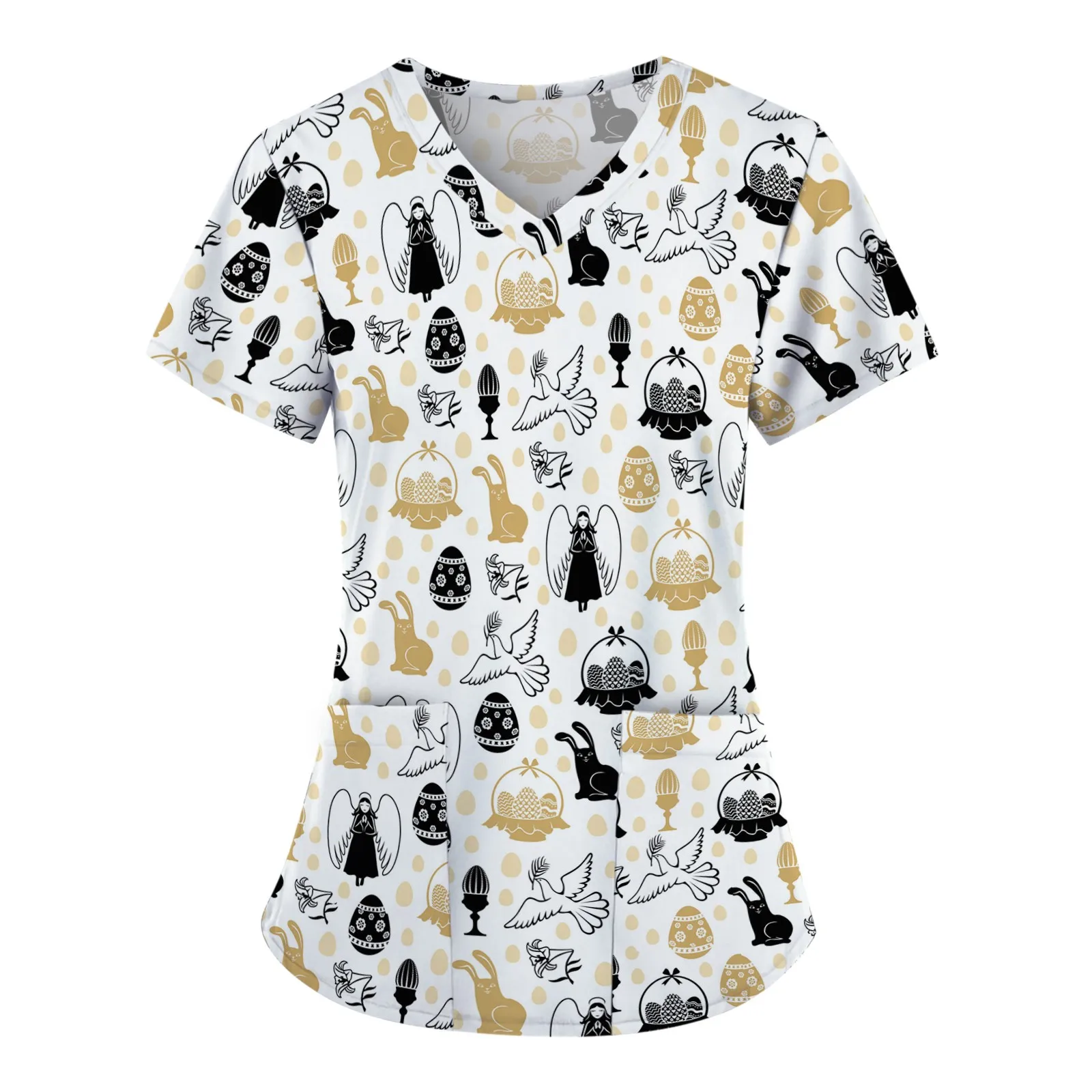 Кроличий Пасхальный принт, рабочие скрабы, топы для домашних животных, униформа для ухода за домашними животными, одежда для салонов красоты, одежда для домашних животных, униформа для ухода за животными, топ A20