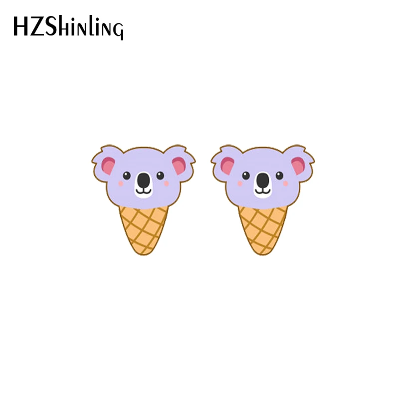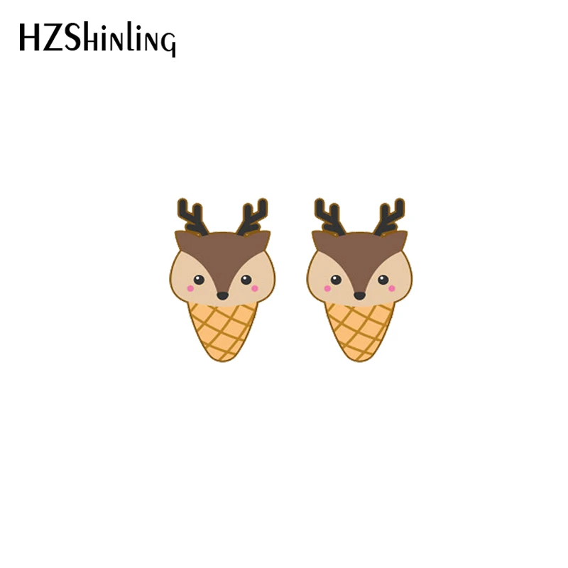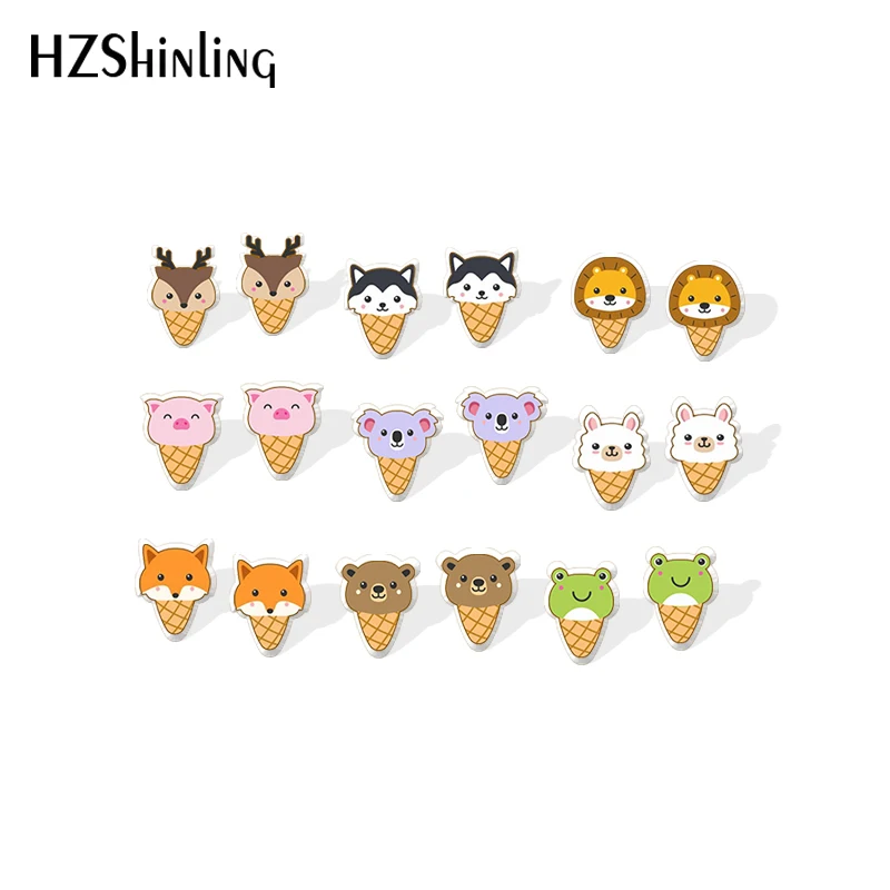 Серьги-гвоздики в виде животных, мороженого, кролика, лягушки, тигр...