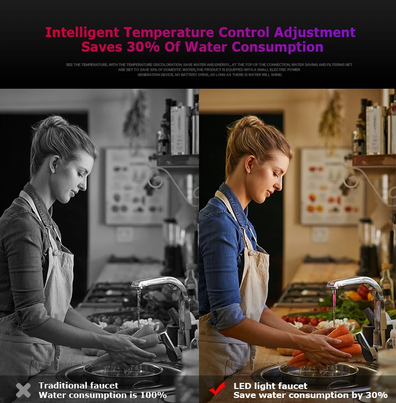 Это маленькое устройство подходит для большинства кранов и загорается набором светодиодов при включении крана.