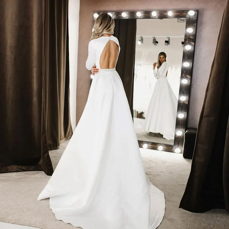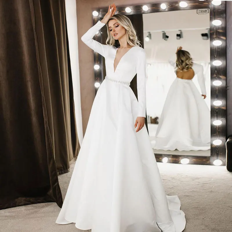 Женское атласное свадебное платье, простое платье в стиле бохо, дли...