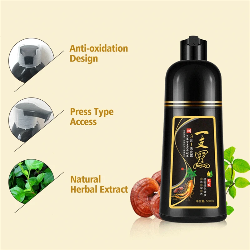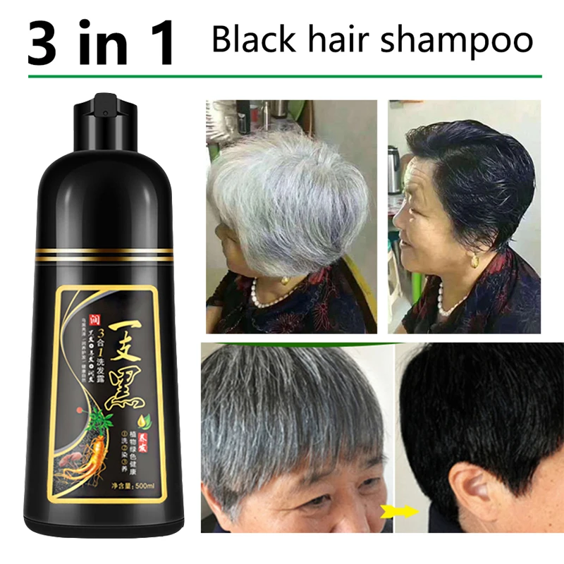 Перманентный шампунь для черных волос, Органический натуральный Быстрый краситель для волос, растительная эссенция, краска для черных волос, шампунь для покрытия, белый, серый, 500 мл