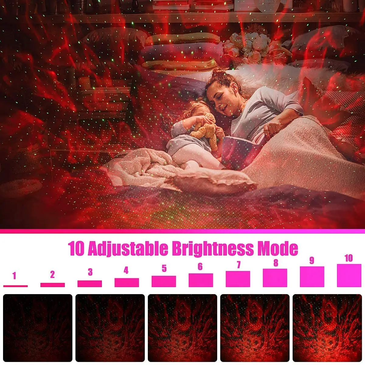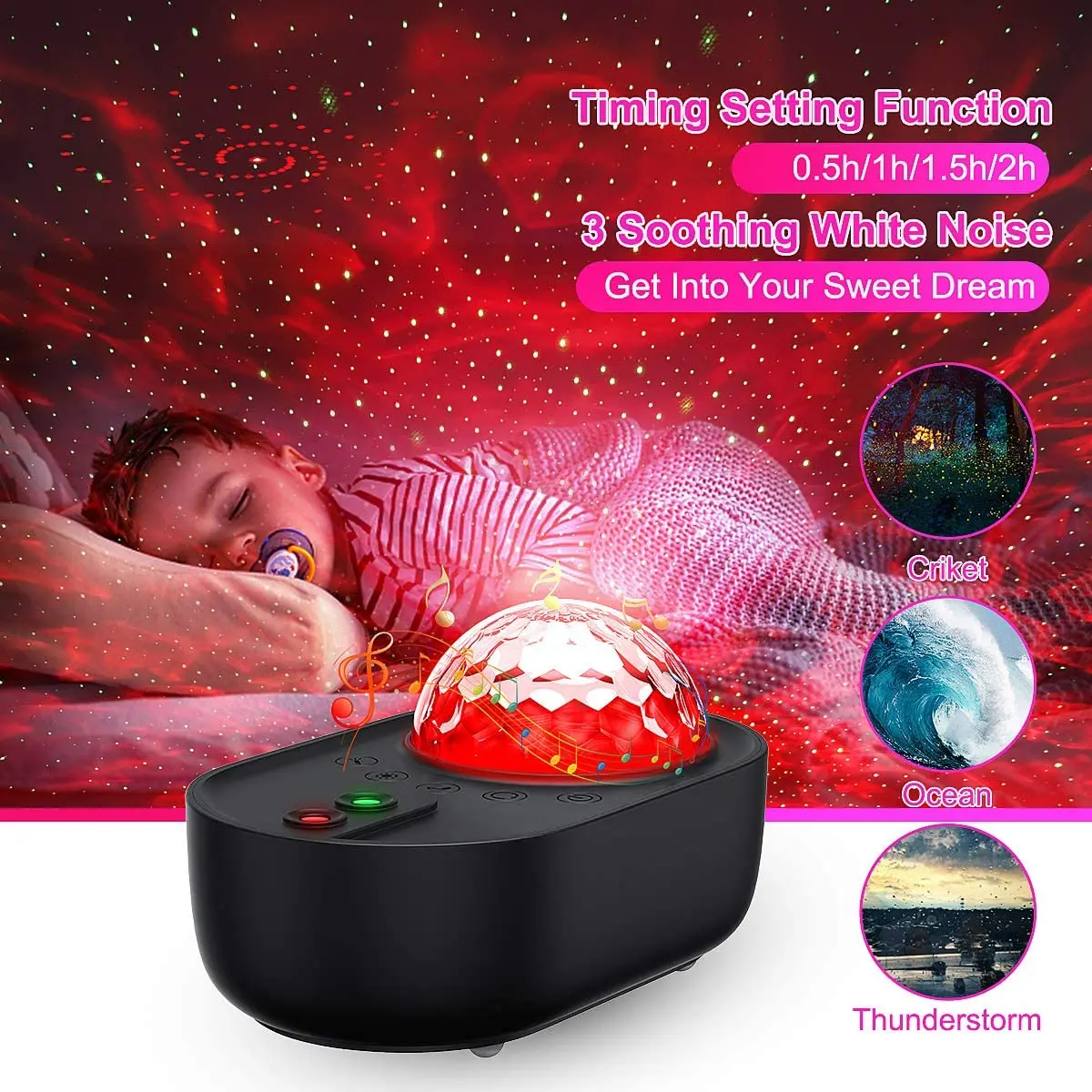 Сенсорное управление ночным светом может изменить цвет, может быть постепенным, может переключаться управление в соответствии со сценойРегулируемый угол проекционного светильника может регулировать угол освещения под любым углом, так что ночник можно проецировать на стену, потолок, пол и все положения комнаты.Кнопка дистанционного управления1. Функция голосового управления: при приеме Bluetooth для воспроизведения внешней музыки (эффект тяжелого баса DJ более заметен), светодиодный проектор сцены лазер и светодиод будут следить за музыкой и ритмом.2. Регулировка яркости, Рисунок воды, звезды, все можно регулировать;3. Регулировка времени: режим потока воды и звезда может быть переключена на 1h / 2h /4h синхронизации;4. Регулировка скорости: скорость ватерлинии и Скорость мигания звезд можно регулировать свободно в зависимости от сцены.5. Переключение режимов: полноцветный, монохромный, смешанный цвет, голосовое управление и другие режимы могут быть созданы для создания хорошей атмосферы.6. Когда bluetooth-динамик воспроизводится, короткое нажатие на предыдущую композицию (Длительное нажатие громкости +)/Короткое нажатие на следующую композицию (долгое нажатие громкости-), пауза/воспроизведение, USB и Bluetooth можно переключать, оба имеют приоритет USB выше, чем Bluetooth,Спецификация:Входное напряжение: DC 5 В/1.5AМаксимальная мощность светодиодного ночника RGBW: 7,5 ВтКрасные светящиеся бусины (620-625nm), зеленые световые бусины (520-525nm), синие светящиеся бусины (460-465nm), зеленые световые волны: 532nmУровень безопасности: Уровень 1Материал: абс инженерный пластикИсточник проекционного света: светодиодПроекционное расстояние: 2-10 ㎡Затененной области:Расстояние 5 м: 20 квадратных метровРасстояние 8 м: 80 квадратных метровУпаковочный лист