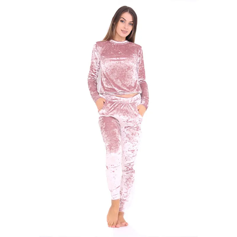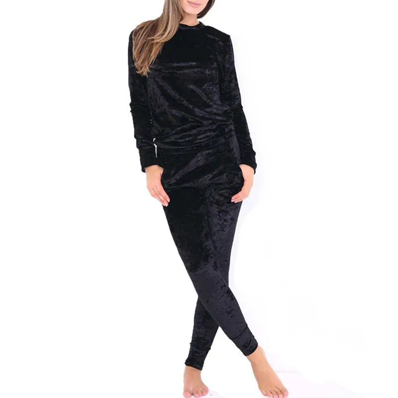 Осенний Женский Теплый Бархатный комплект из 2 предметов, спортивный костюм, мягкий гладкий бархатный домашний костюм, женский комплект для фитнеса