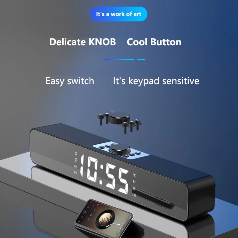 Светодиодная звуковая панель с будильником, Беспроводная Bluetooth-колонка, домашний кинотеатр, объемная звуковая панель для ПК, ТВ, компьютера, динамик