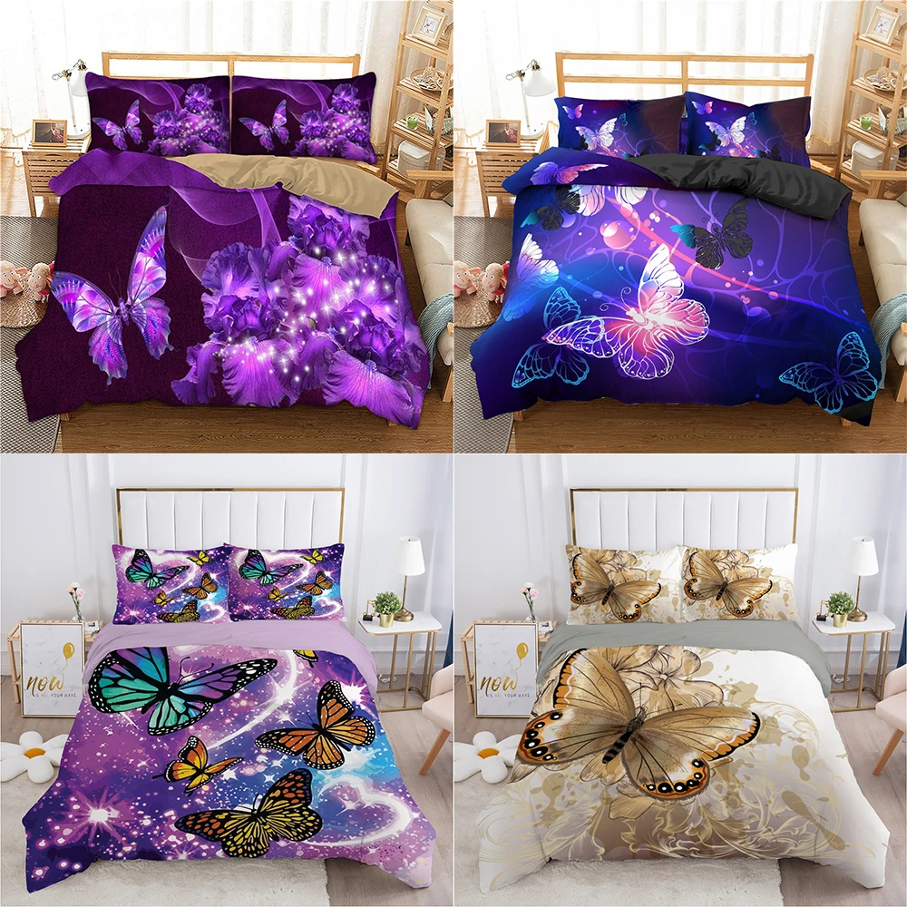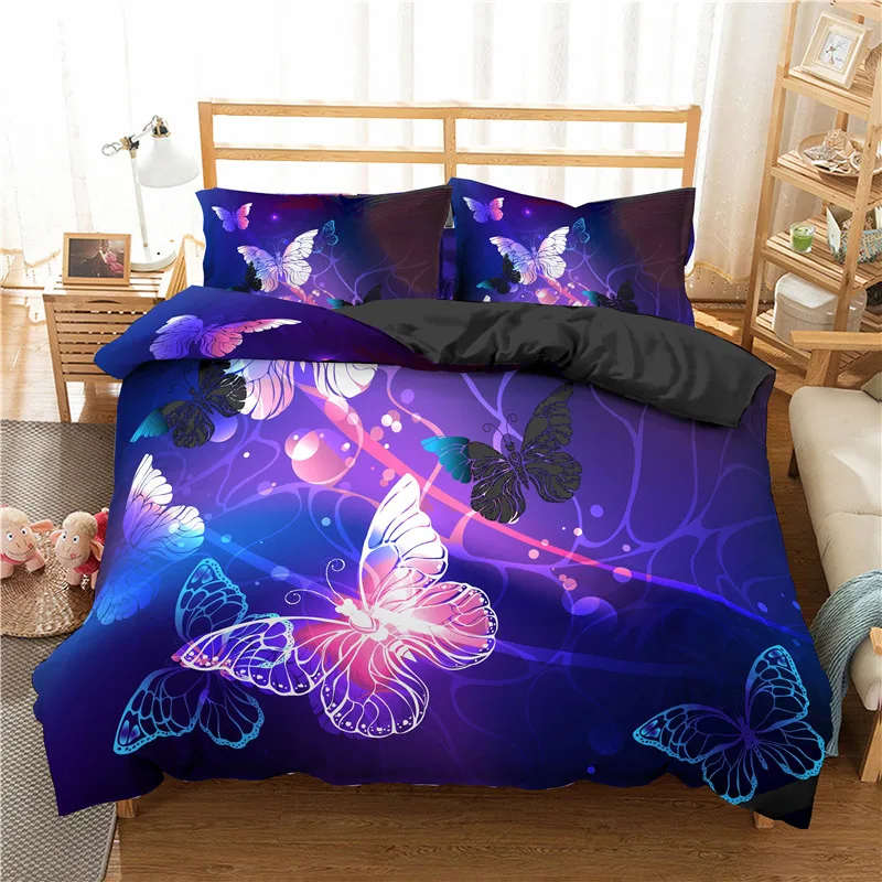 Комплект постельного белья с 3d принтом бабочек, домашний текстиль, 23 шт., декор для спальни, пододеяльник с наволочкой для взрослых и детей с животными