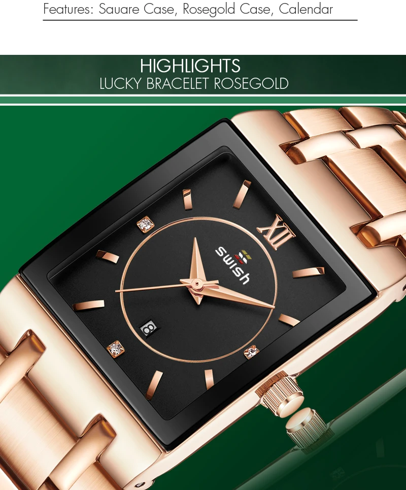 Часы женские, квадратные кварцевые, браслет из розового золота