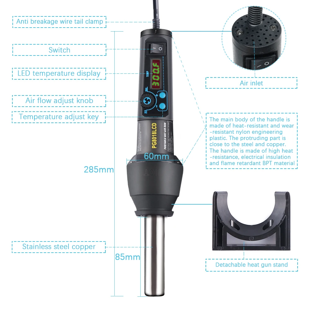 Паяльная станция PG8018LCD 220 ВЕС, 650 Вт, регулируемая электронная Тепловая пушка, паяльная станция для распайки IC SMD BGA + сопло