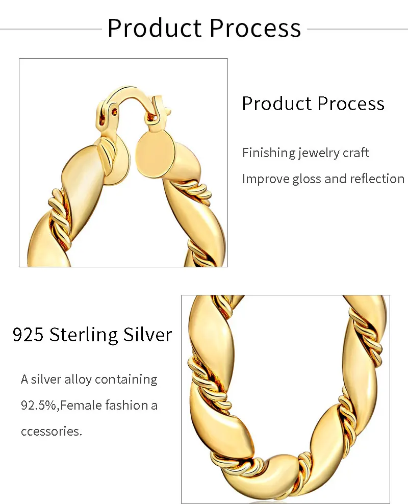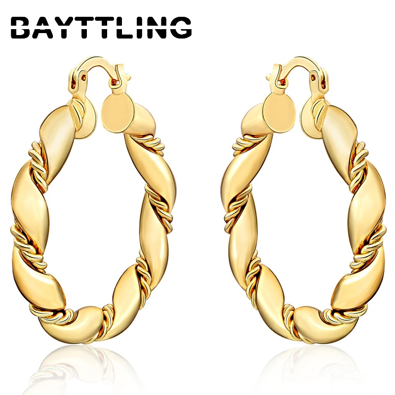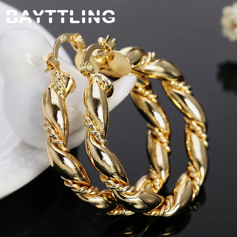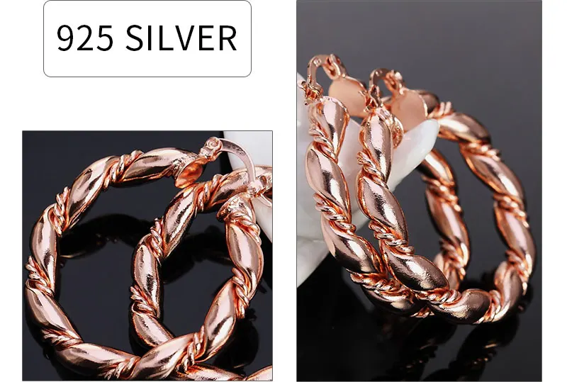 Витые серьги-обручи BAYTTLING из серебра 925 пробы с изящным золотомрозовым золотом для женщин, женские модные ювелирные изделия для помолвки, подарок