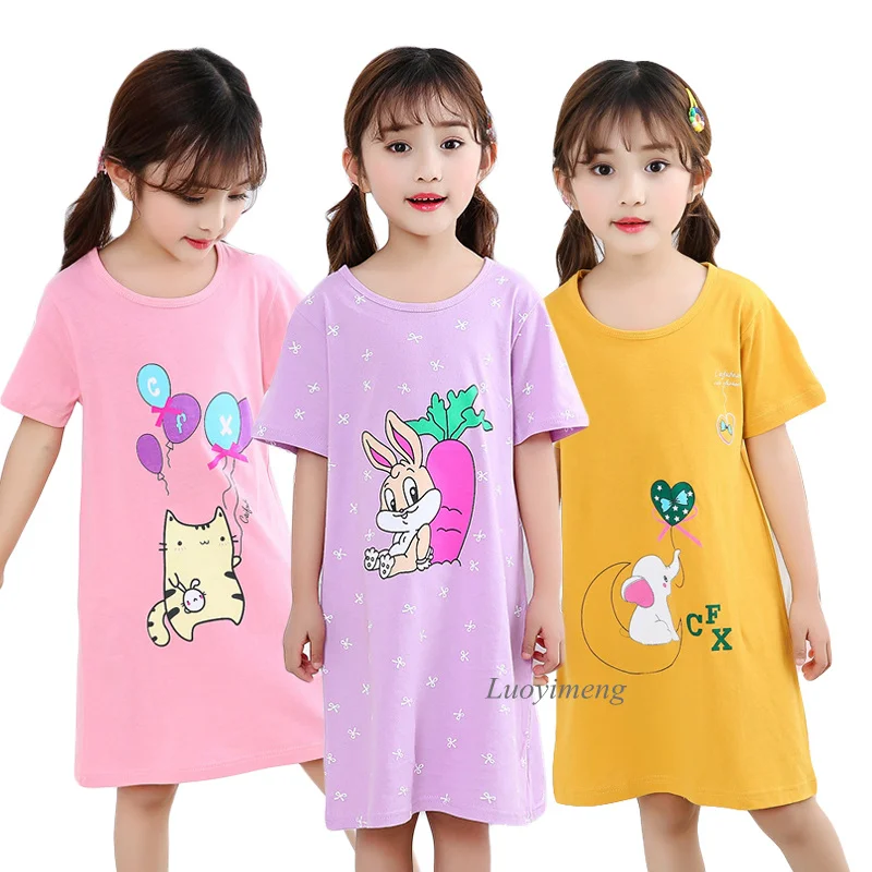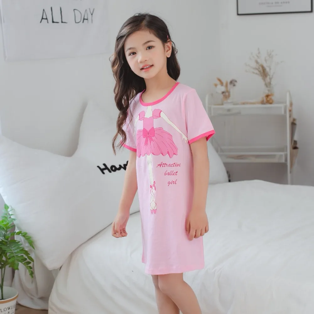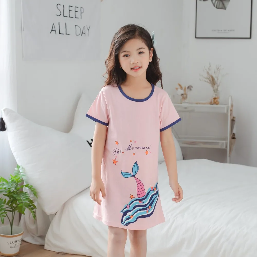 Летняя ночная рубашка для девочек, детские пижамы, хлопковые ночные рубашки для девочек с единорогом, детская одежда для сна с короткими рукавами, одежда для подростков с героями мультфильмов