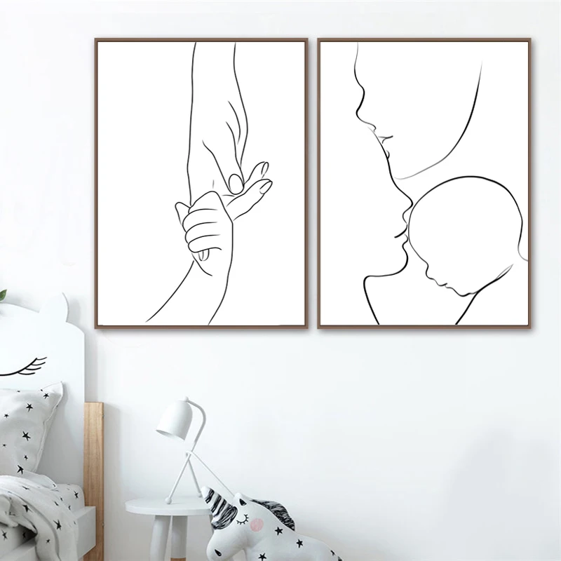 Семейная любовь, холст, постер, Новорожденные, мама, руки, линия, искусство, детская Настенная картина, декор для детской комнаты, абстрактные принты