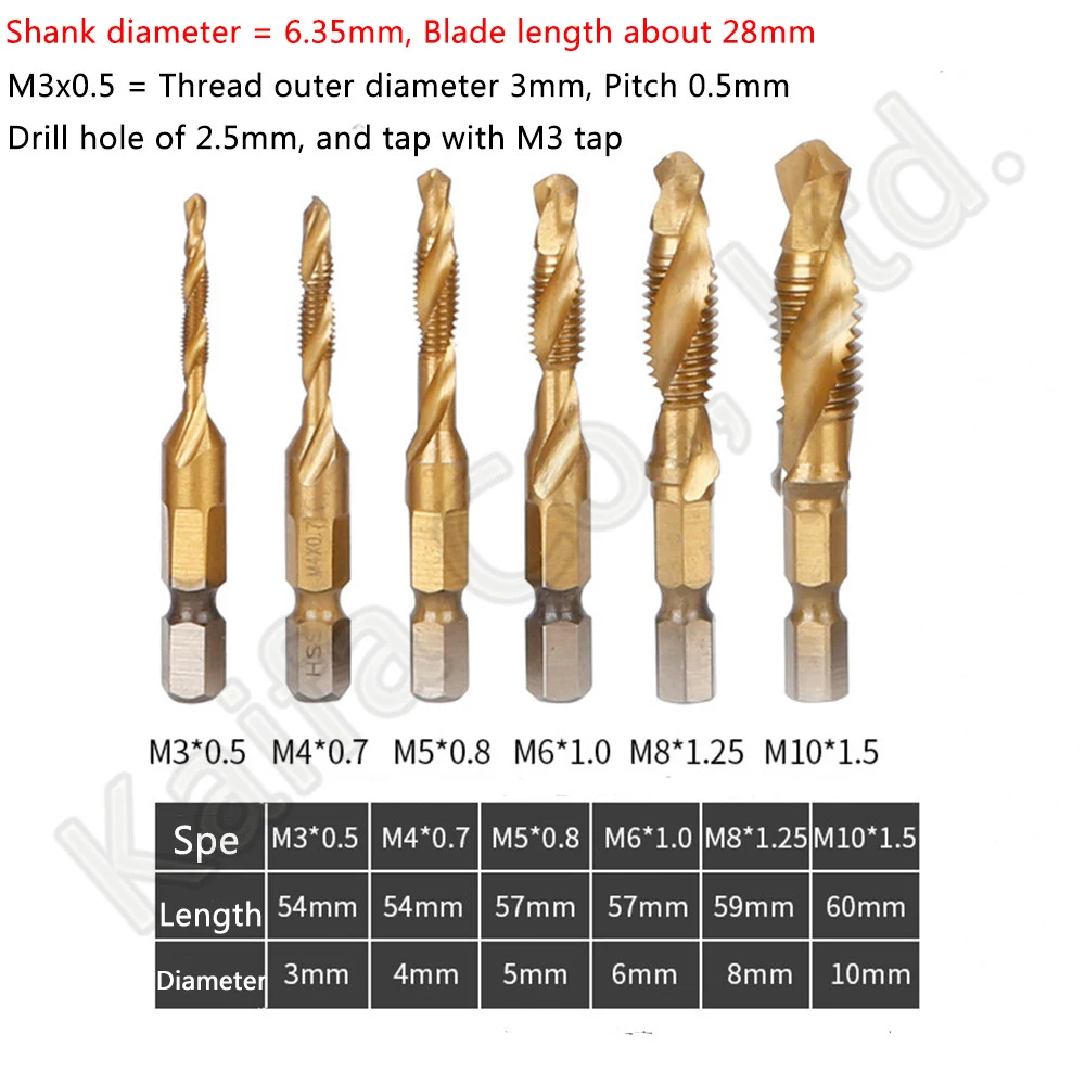 8 шт.лот M3-M10 винтовые сверла из быстрорежущей стали метрические комбинированные сверла для деревообработки титановые 14 "в быстросменном шестигранном центре