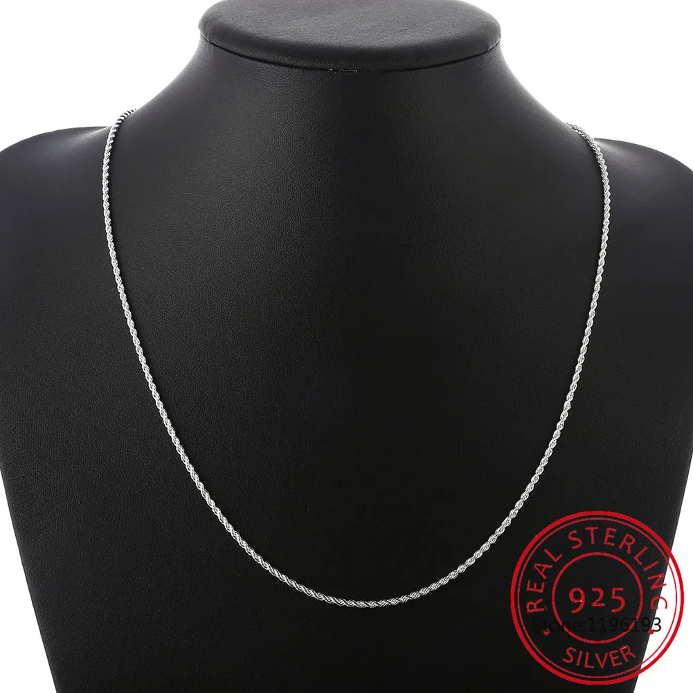 Цепочка из серебра 925 пробы, 2 мм3 мм4 мм, модное ожерелье для женщин и мужчин, бижутерия, аксессуары 16 "18" 20 "22" 24"