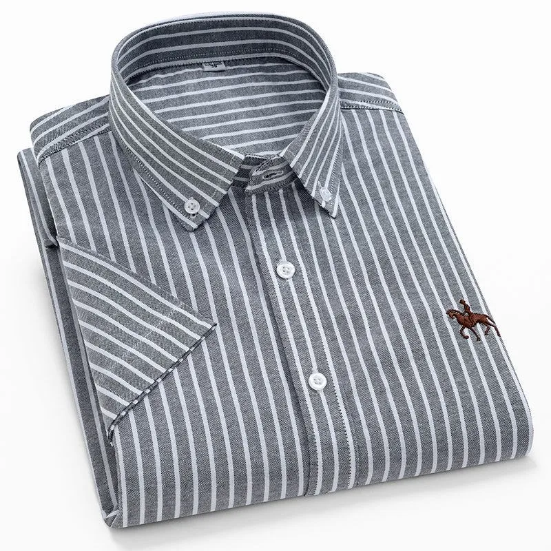 Рубашка мужская оксфордская с коротким рукавом, чистый хлопок, без карманов, с вышивкой лошади, Повседневная на пуговицах, короткий рукав, 6XL, 100%