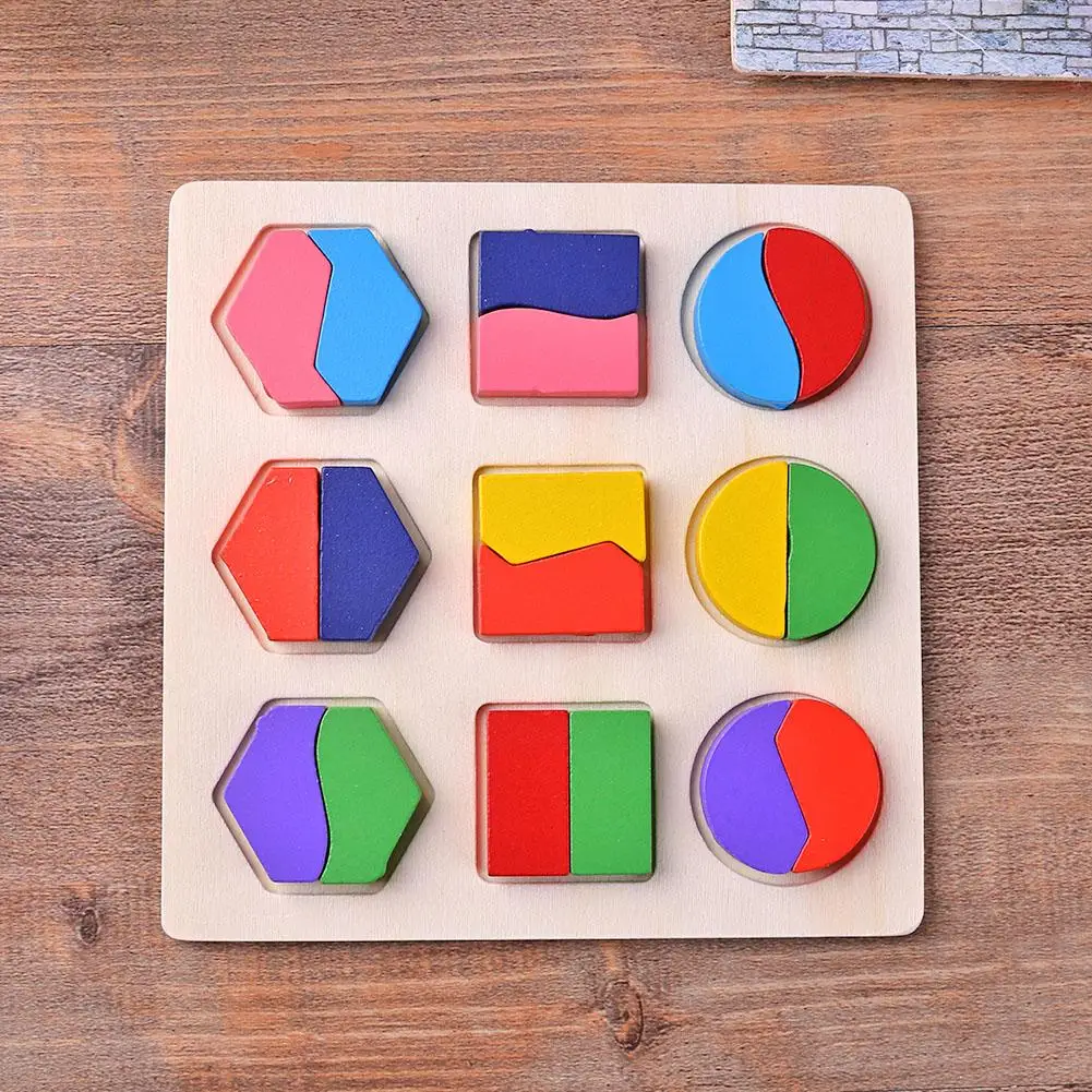 Деревянные геометрическими фигурами головоломка Монтессори сортировки Математика кирпичи дошкольного возраста обучающие игры для маленьких детей игрушки для детей