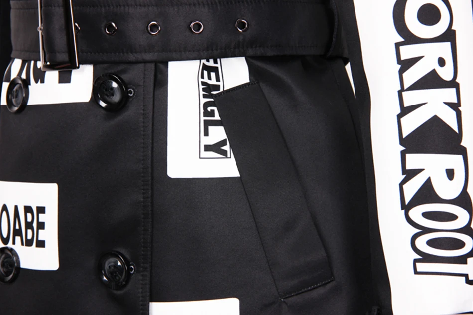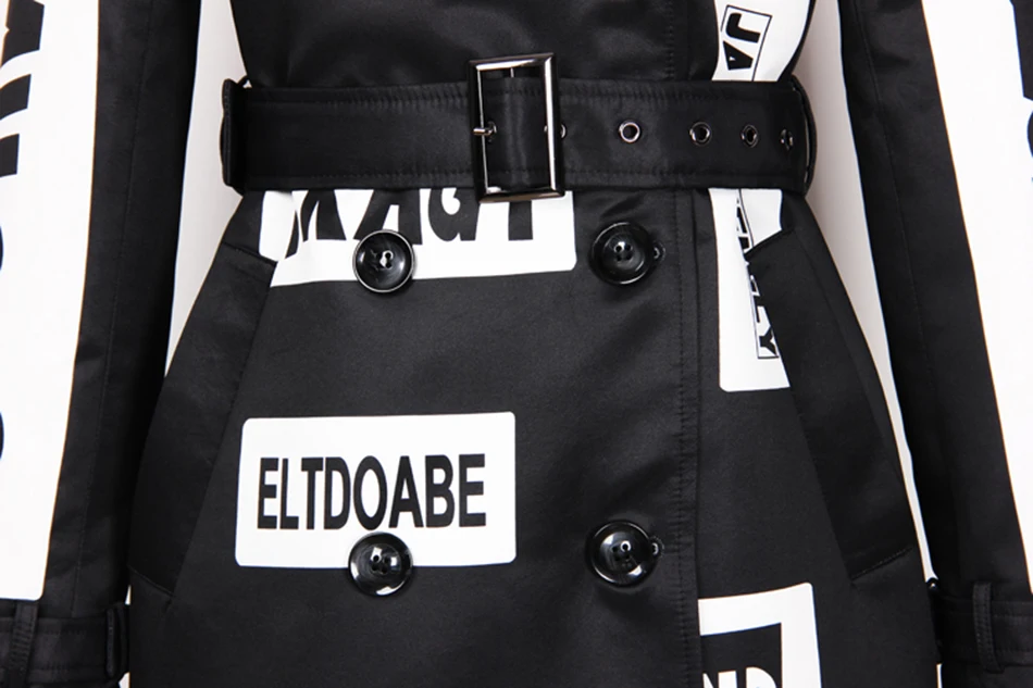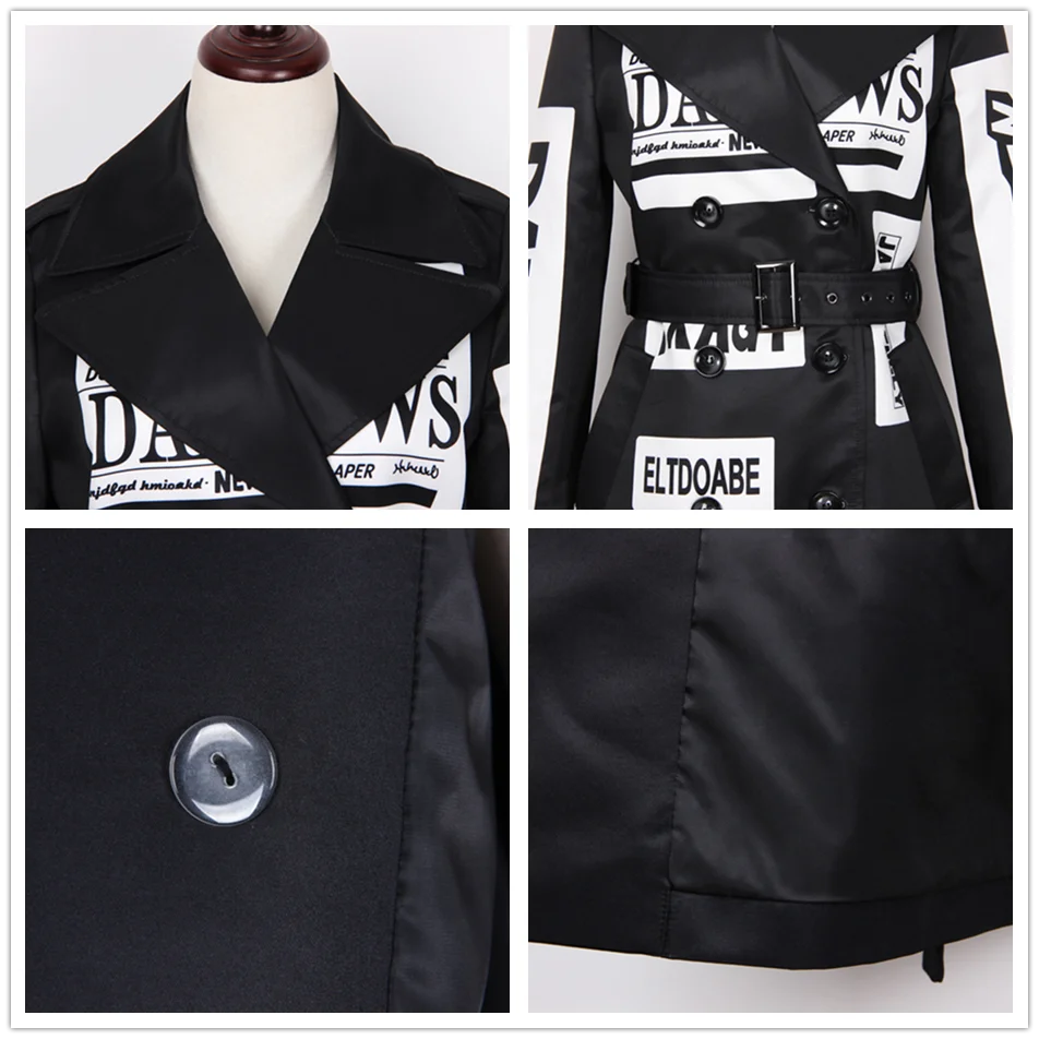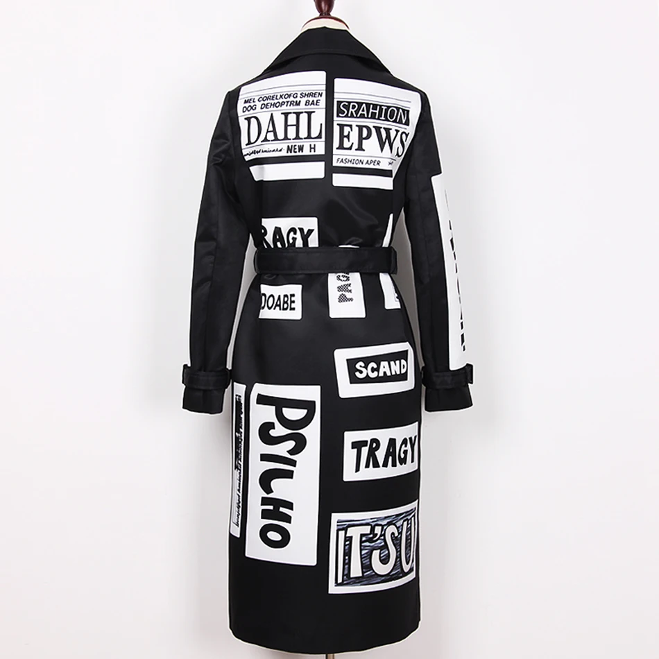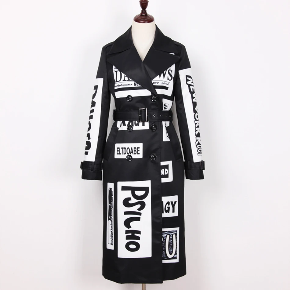 Женская двубортная ветровка, длинное пальто с принтом в виде букв, свободного покроя, с поясом