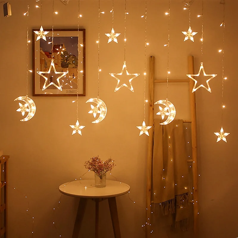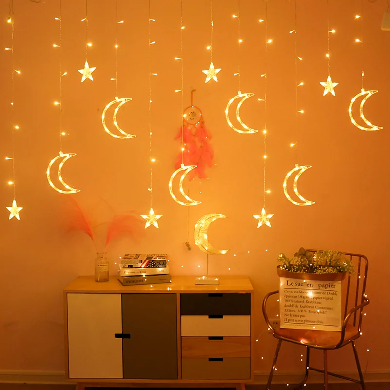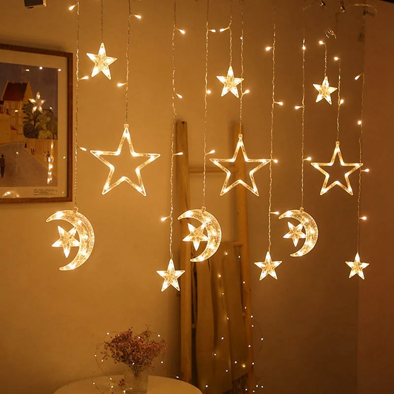 СВЕТОДИОДНАЯ Гирлянда в виде луны и звезд, гирлянда-занавеска для рождества, Нового года, свадьбы, вечеринки, лампа для дома и комнаты