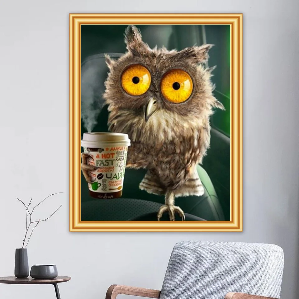 5D DIY Алмазная картина с совой, Вышивка крестом комплект полный дрель квадратной формы с вышивкой в виде животных и мозаичного искусства картина с украшением в виде кристаллов, украшение для дома