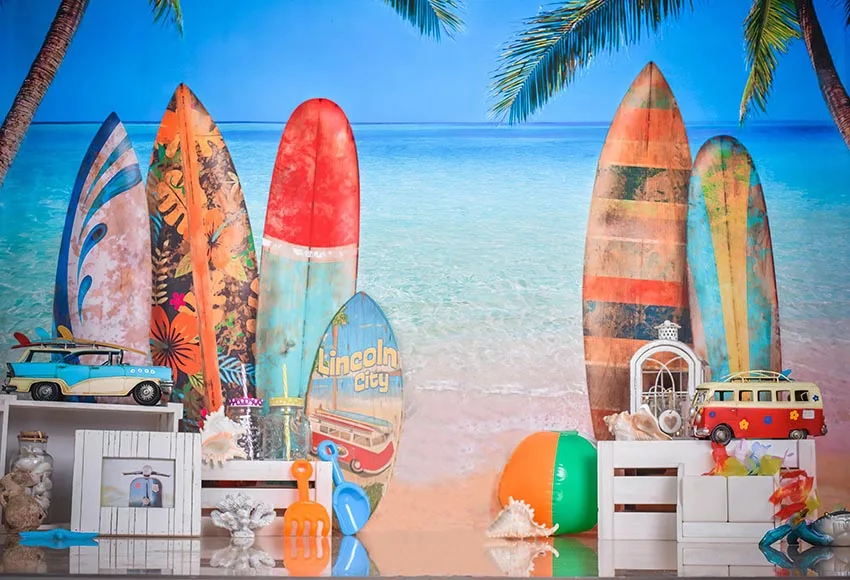 Фон для фотосъемки Mehofond лето серфинг доска для серфинга пляж море голубое небо день рождения фон для фотосъемки в студии