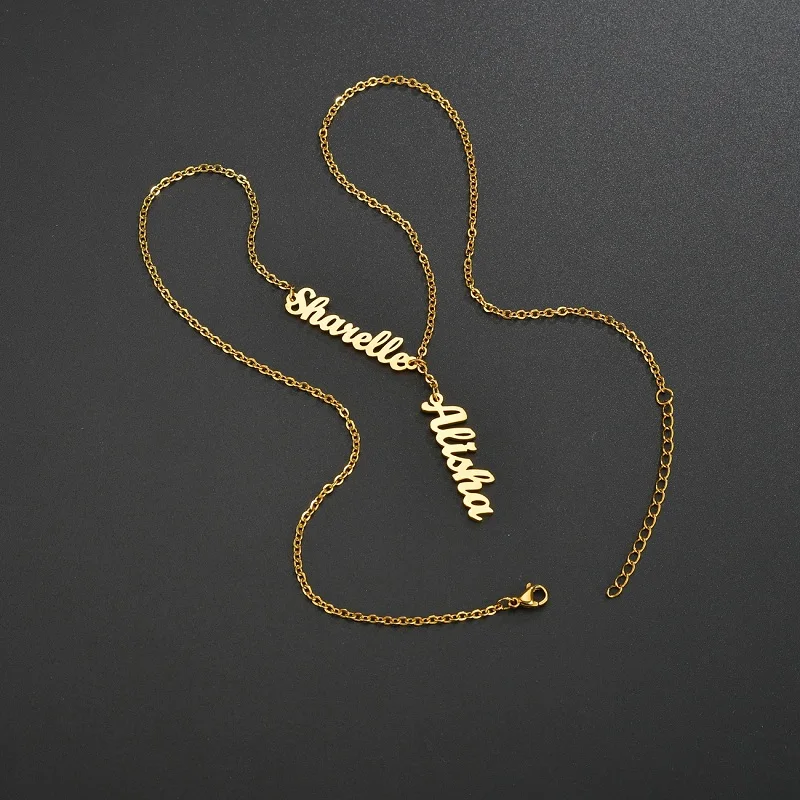Новый стиль, ожерелье с именем на заказ с двумя именами, с именной табличкой, ожерелье из нержавеющей стали, персонализированные ювелирные изделия, подарок для девушки вечерние