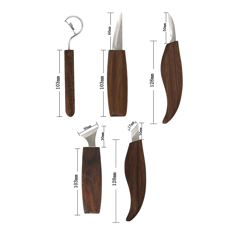 Набор инструментов для резьбы по дереву включает в себя резец крюка, Универсальный резак, изогнутый резак хвоста, точильный камень, буковая ложка, воск, наждачная бумага, мешок и т. д.