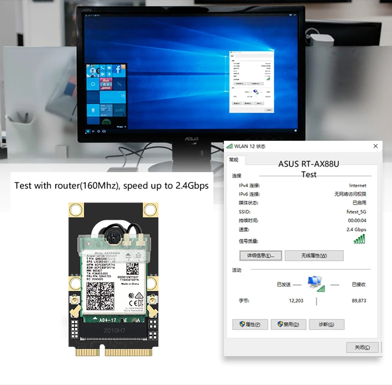Модель: Wi-Fi 6 AX200;Интерфейс: Mini PCI-E;Двухдиапазонный: 2,4 ГГц/5 ГГц (160 МГц);Скорость до 2400 Мбит/с (маршрутизатор должен быть на 160 МГц)(802.11ax);Поддержка Bluetooth 5,1;Поддержка Windows 10 64 бит;Поддерживаемые операционные системы: работает только на Windows 10*64 бит; Linux;Примечание: не поддерживает Windows 7/8/8.1.Совместимость с:Он может использоваться на Samsung/Dell/Sony/ACER/ISUS/MSI/Clevo/Terransforce/Hasee и т. Д.Не поддерживает Ноутбук IBM/Thinkpad/lenovo/hp. (но для ноутбука HP/Lenovo 2016 выше, он может поддерживать.)