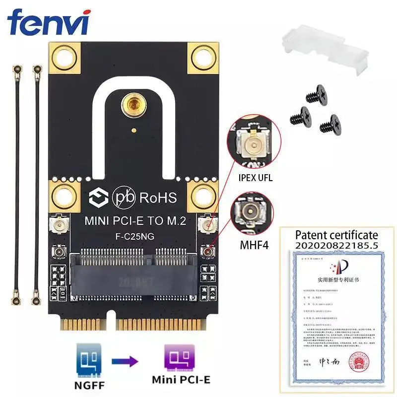 Бренд: fenvi;Состояние: новое;Тип интерфейса: M.2 / NGFF ключ E A к Mini PCI-E;Характеристики: включает Антенный интерфейс IPEX 4, интерфейс IPEX, который не требует замены антенн;Нет необходимости в дополнительном адаптере питания и любых драйверах;Поддерживает и предназначен для: Mini PCI-E слот;Примечание: только поддержка ключа A + E к PCI-E (не может использоваться один ключ E интерфейс), Совместимость с беспроводной Wifi Bluetooth картой, такой как AX200, 9260, 8265, 8260 и BCM94352Z, DW1560 NGFF(M.2) беспроводная карта, и т. Д.Не подходит для модуля Intel 9560, AX201, SSD ,3G/4G.Примечание: При заказе товара, пожалуйста, проверьте размер.