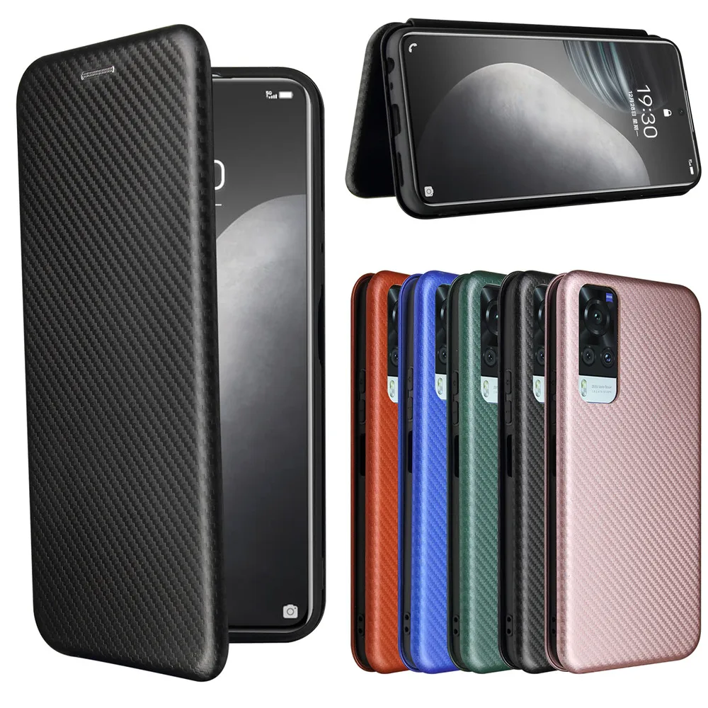 Чехол для Vivo V21E, роскошный флип-чехол из углеродного волокна с ...