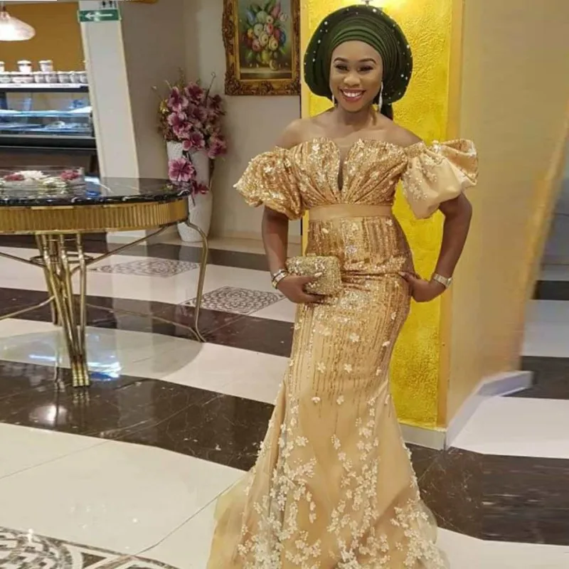 Aso Ebi Сумочка в африканском стиле Русалка Вечерние платья желтого...