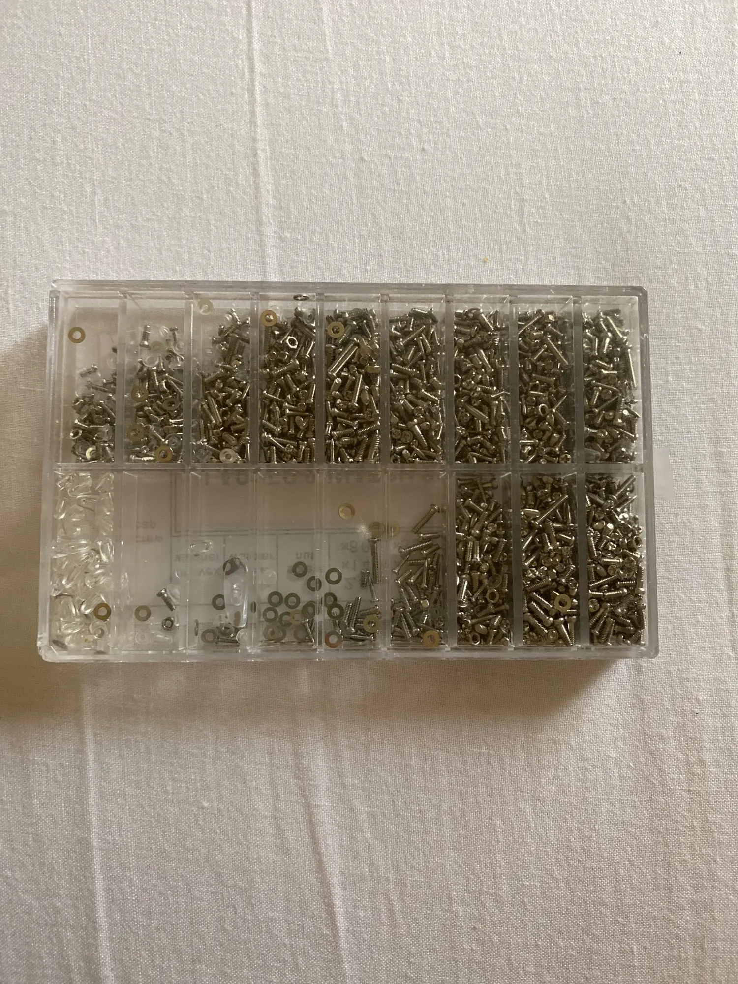 Viene tal y como en la foto, una buena coleccion de tornillos de pequeño tamaño y ordenados en su caja. Para mi perfecto. Tardó ocho dias en llegar a España, en un sobre acolchado y sin ningun daño. Estoy contento con la compra