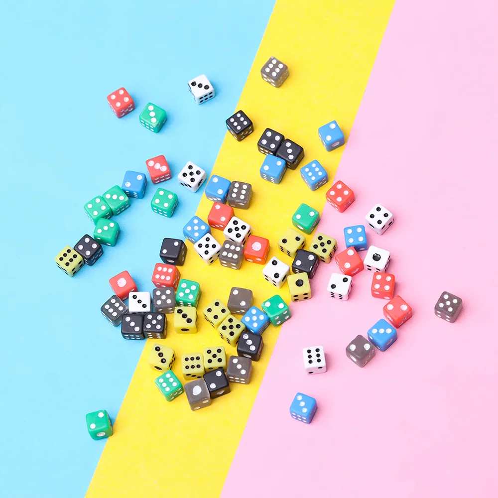 7 видов цветов Стандартный шесть двусторонний игровой питьевой кости настольная игра 5 мм акрил развлечения инструмент для вечеринок по случаю Дня Рождения 50 шт./пакет