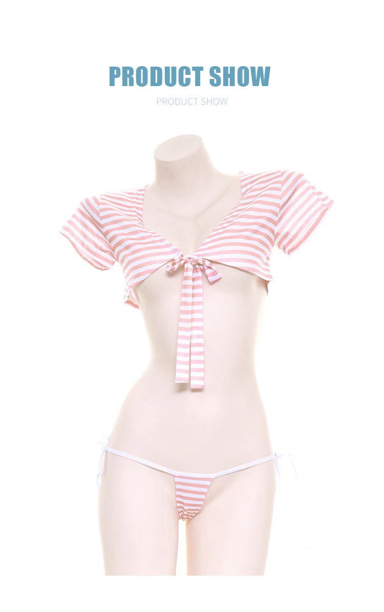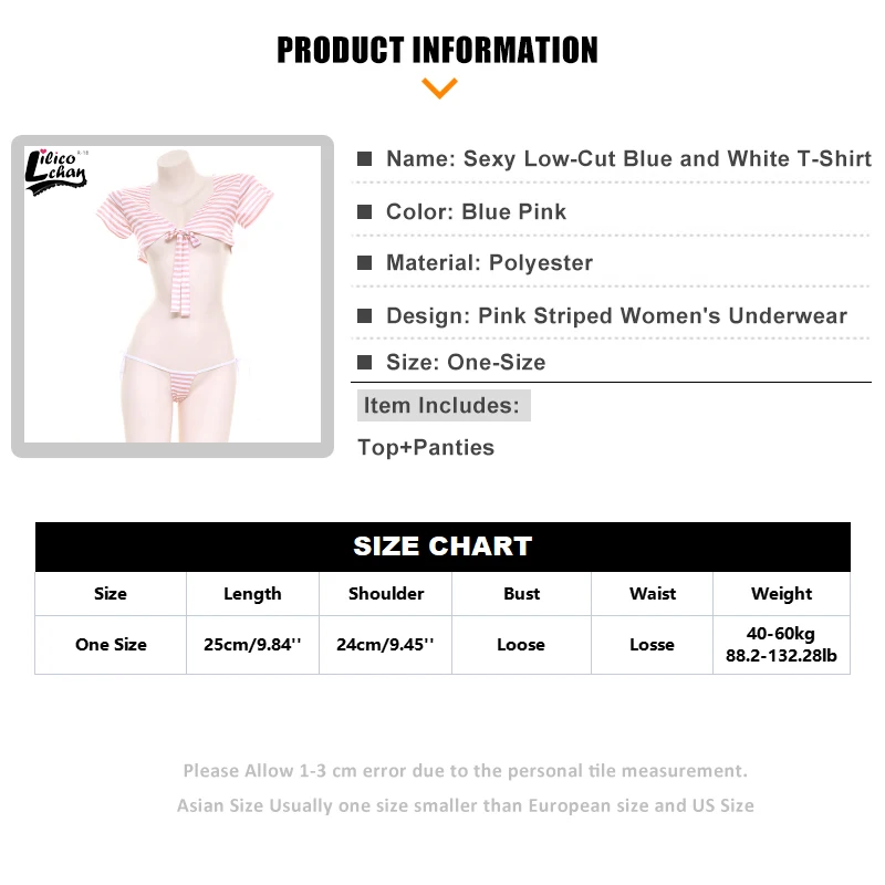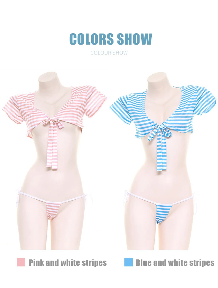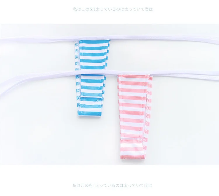 Сексуальная футболка с глубоким вырезом и белым цветом, женское нижнее белье в розовую полоску, бюстгальтер, комплект бикини, ультра-короткое нижнее белье для японских студентов