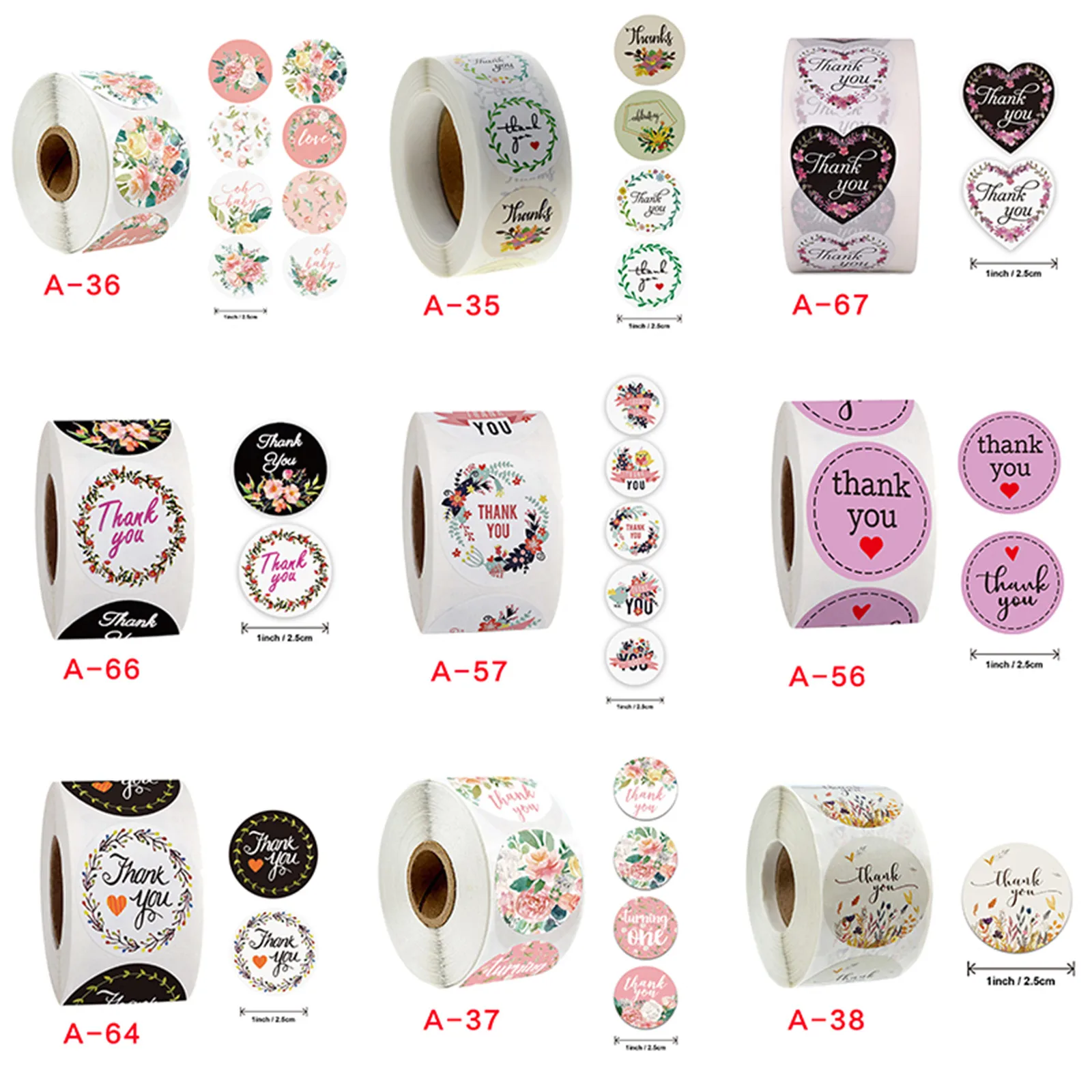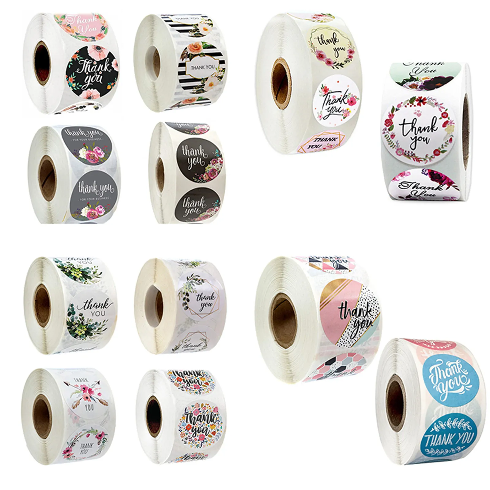 500 шт. в рулоне Круглые Цветочные стикеры спасибо за Скрапбукинг д...