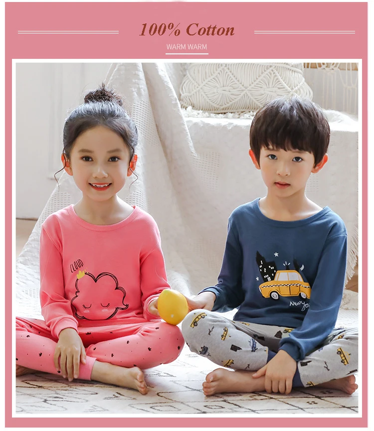 Пижама детская, из 100% хлопка, с длинным рукавом, на осеньзиму