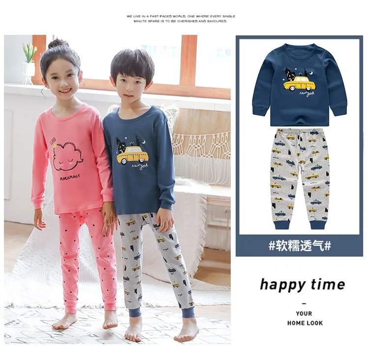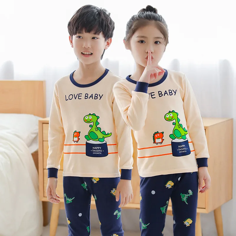 Пижама для мальчиков и девочек, хлопковая, на осеньзиму, с длинным ...