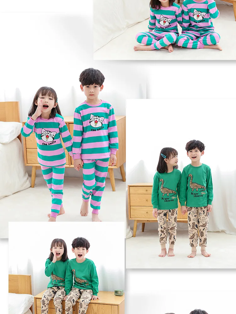 Ночная одежда для маленьких мальчиков и девочек осенние хлопковые п...