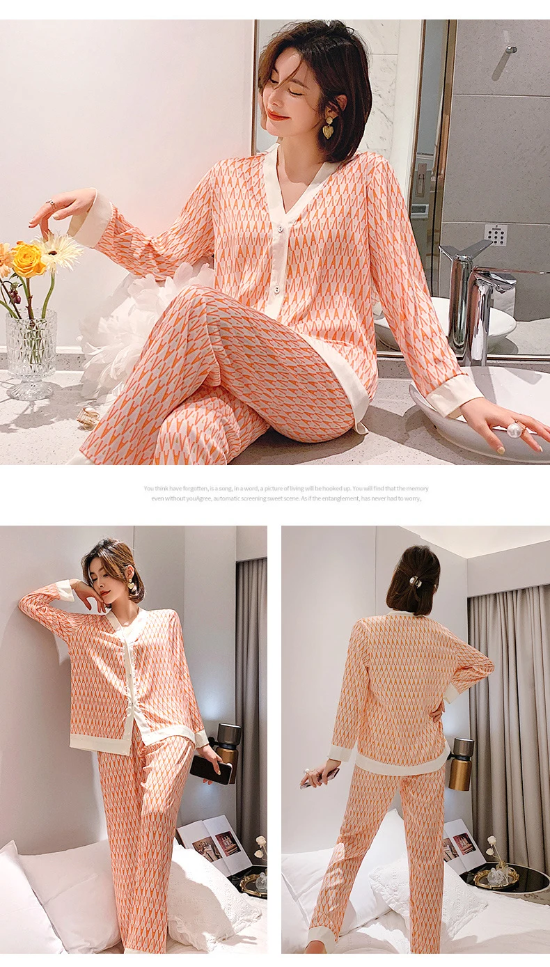 Пижамный комплект женский с V-образным вырезом, роскошная одежда дл...