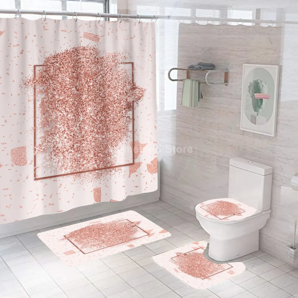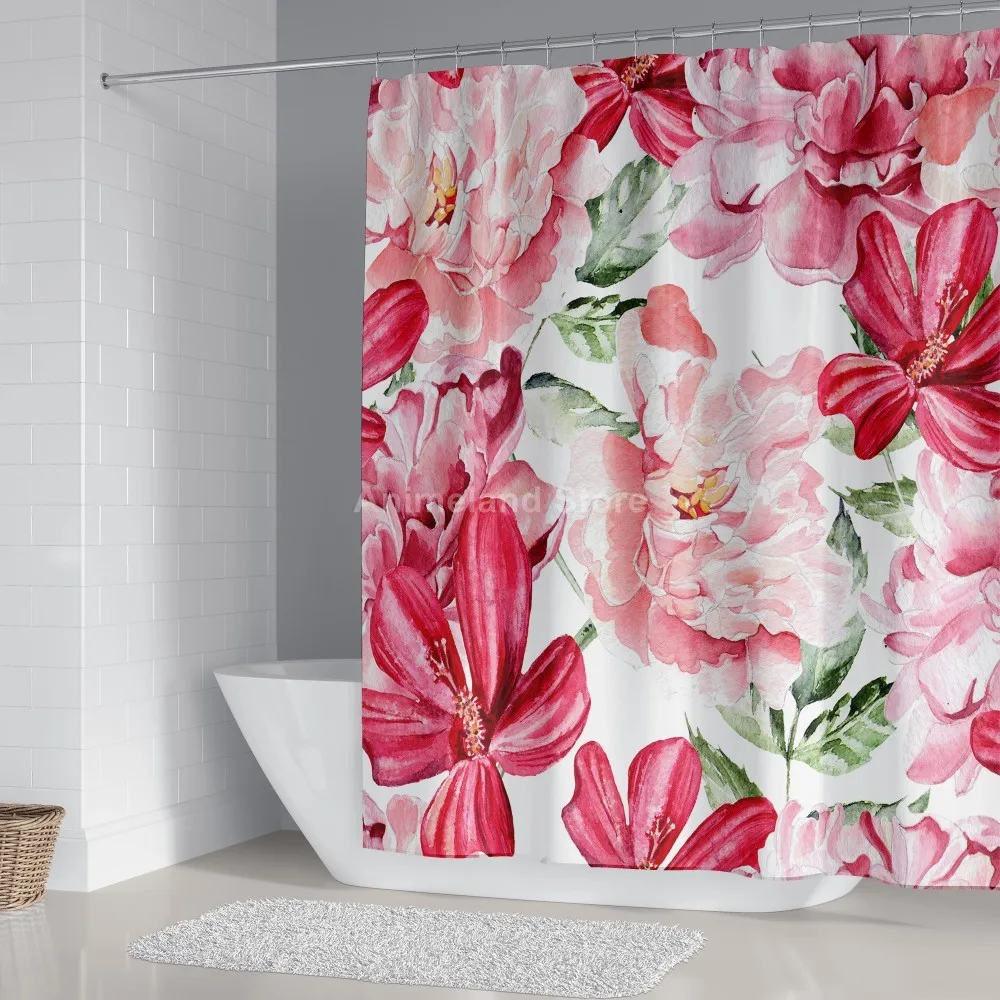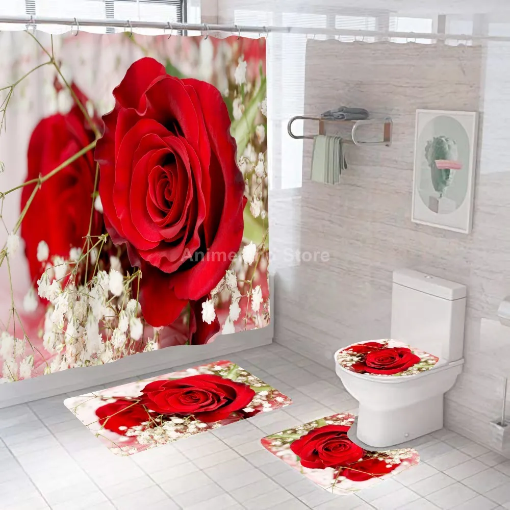 Занавеска для душа, розовая роза, 3D, набор, элегантная, современная, шикарная, с розами, занавеска для ванной, коврики, ковер, домашний декор, 180x200