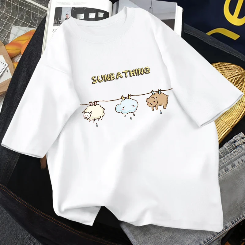 Футболки женские с рисунком милого медведя, одежда с принтом, модна...
