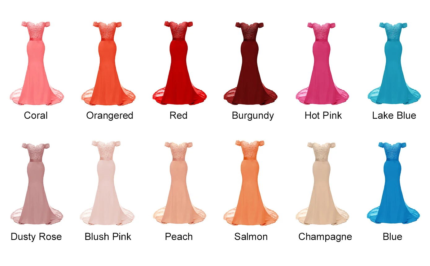 Это платье имеет в общей сложности 36 цветов, как показано ниже