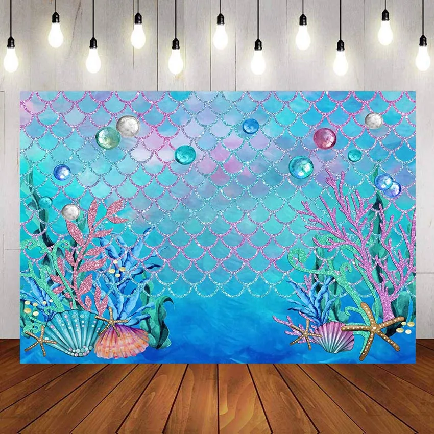 Русалки фон для фотосъемки детского дня рождения День рождения коралловый рыбья чешуя "Русалка" под водой баннер фон для студийной фотосъемки