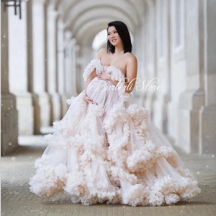 Пышная ярусная Тюлевая длинная одежда с оборками для беременных жен...