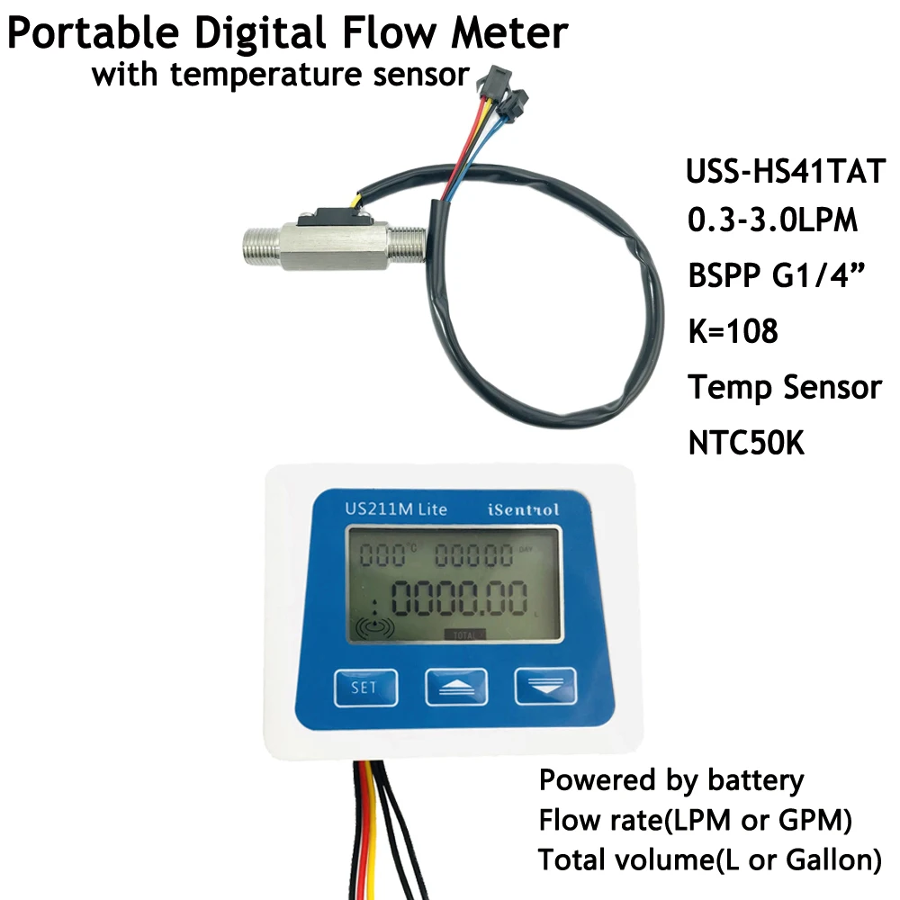 Расходомер турбины US211M Lite цифровой расходомер топлива USS-HS41TAT 0,3-3LPM 5V Flowreader с Температура Сенсор NTC50K интегрированный