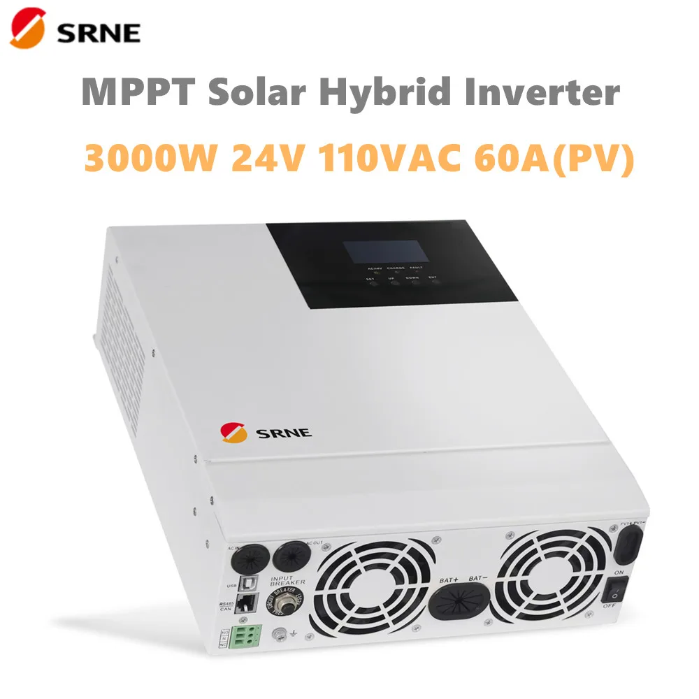 SRNE 3000W все-в-одном со слежением за максимальной точкой Мощности гибридный солнечный инвертор 24V 110VAC инвертор с чистым синусом Макс 100V 60A-регулируемым приводом 50Гц 60Гц неэлектрифицированный инвертор заряда