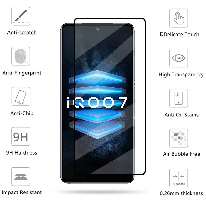 Полностью клеящееся закаленное стекло для IQOO 7 стекло для IQOO 7 Защита экрана телефона Защитная пленка для объектива камеры для IQOO 7