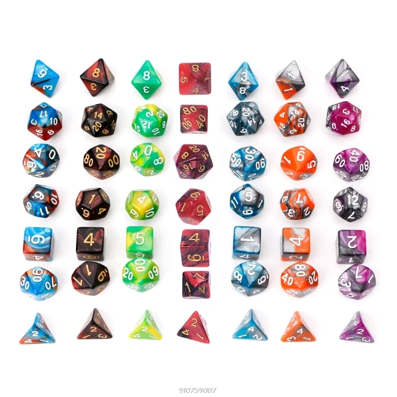 7 шт.компл. акриловые кости многогранные кубики для трпг Настольная игра D4-D20 F25 21 оптовая продажа
